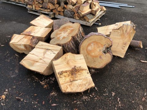 「ご不要になった丸太や薪がございましたら、どうぞお持ちください♪」