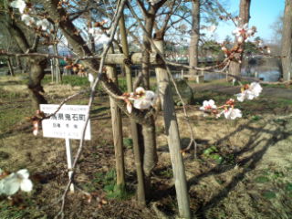 まだほんの少し咲き出しただけですが・・日中、温かさから一挙に咲くかも。帰宅してから見上げるのが楽しみです。