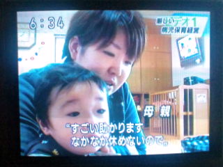 NHKが本格的に病児保育についての放送をしたのは、当地では初めてのこと。女性の就業をささえ、社会のセーフティーネットであることがしっかり知られるようになったからなのだと思います。