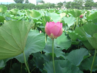 蓮を見ながらお散歩です。わざわざ遠くに出かけなくても、素晴らしい景色を見ることができます。けっこう贅沢な暮らしかな?