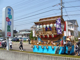 今は直江津祇園祭の真っ最中。町内ごとにお神輿(みこし)を持っていて、旧市内を3日間にわたって引き回します。医院の近くを、何台ものお神輿が通っていきました。