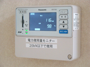 職員の見やすい所に設置してあり、電気器具の使用が多くなったら、使用量を確認するように指示してあります。もし使い過ぎていれば電気の使用を減らして行く。