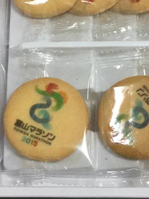 富山マラソンでであったクッキーです。富山マラソンを記念して作られています。こんなクッキーを用意してくれるとは、気の利いた演出です。