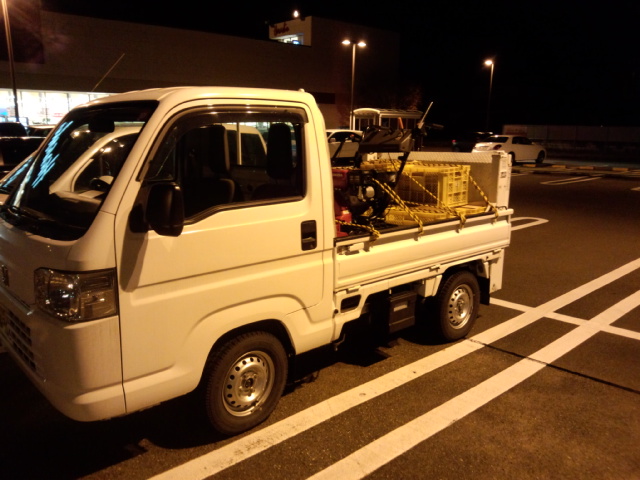今日は軽トラ通勤。修理から帰ってきた除雪機と耕耘機に、さらに薪をたっぷり積んで帰宅です。