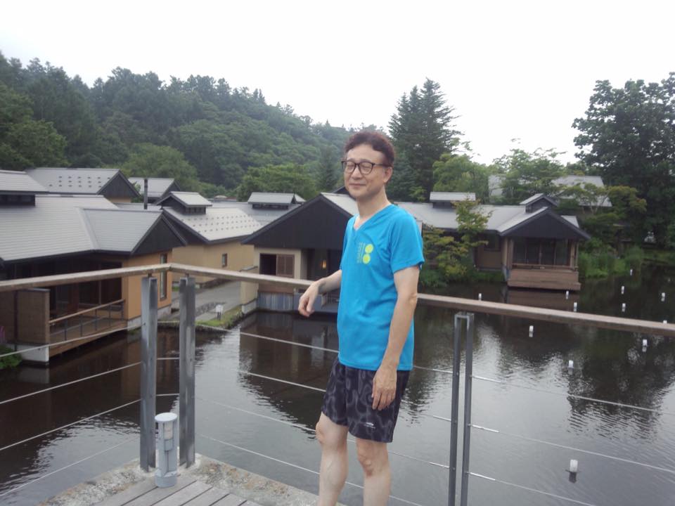 で、ちょっとお出かけしたのですが・・どこに行ってもこの格好です。温泉を楽しむためにも、まずは走って汗をかこうという作戦。