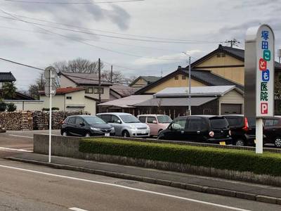 ここは当院の駐車場です。車庫があったり、薪を積んで乾燥させている場所。