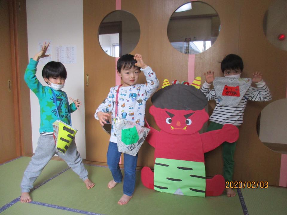 病児保育室でも節分の豆まき。みんな、元気に鬼を退治してくれましたよ。