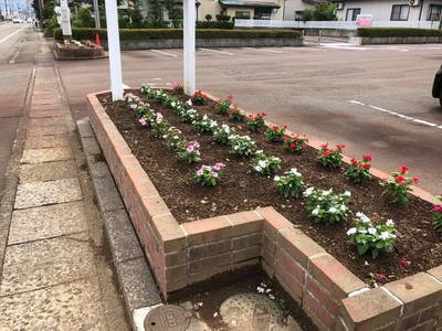 そのあと、「園芸部」職員が花を植えてくれました。業者さんに負けず劣らずの出来上がりになっています!