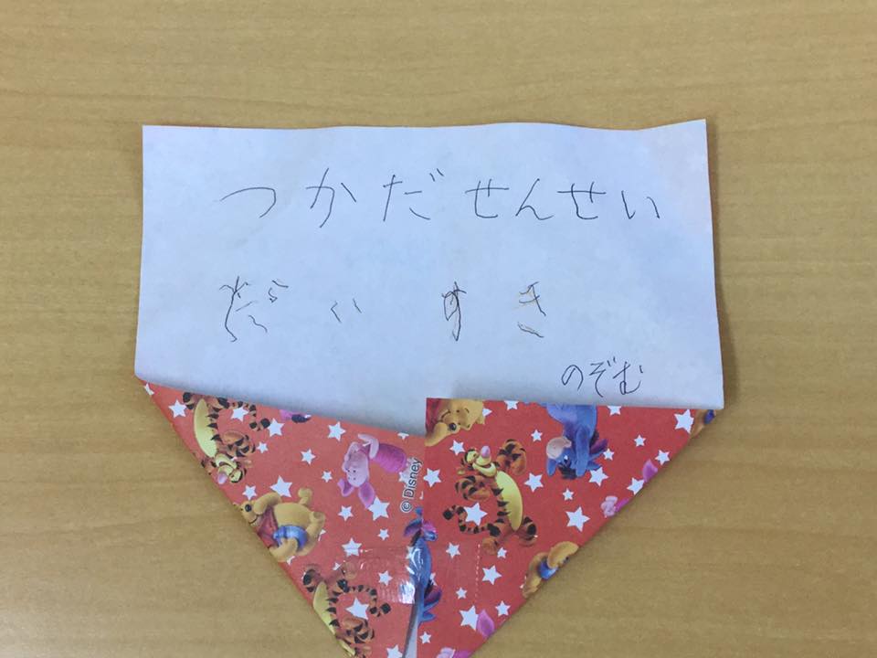 あるお子さんからラブレターをもらいました。遊びだとは分かっていますが、この歳になっても嬉しいものです。ありがとうね。