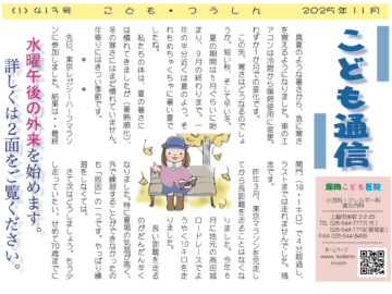 インフルエンザが発生しています。まだ少数ですが、園によっては登園自粛の措置をとっているところもあります。注意をお願いします。インフルエンザの予防接種を早めに受けておくようご検討ください。