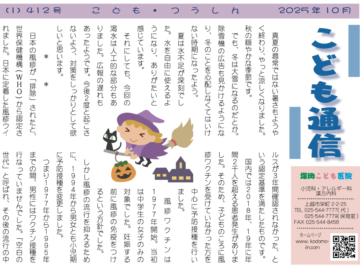 新型コロナウイルス感染症の流行はやや少なくなりました。子どもは軽く済んでいるようです。もうしばらく注意をお願いします。